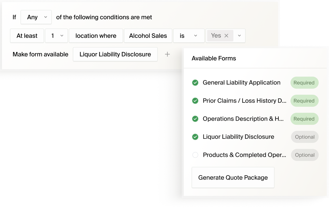 Kalepa supports your forms library and logic, instantly applying the right forms and endorsements based on coverage, jurisdiction, and risk characteristics.